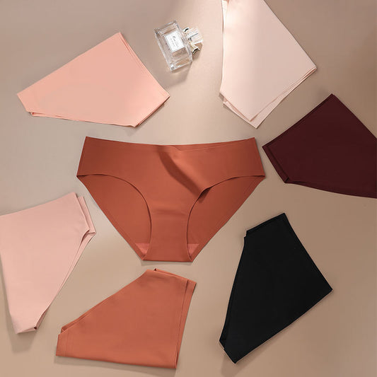 Cross-border Special For Large Size Low Waist Seamless Ice Silk Cotton Crotch Panties One Piece Folded Quick-drying Women's Briefs