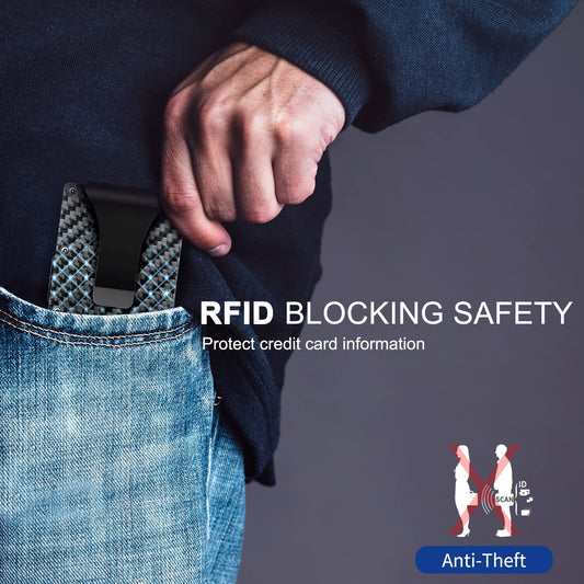 Card Holder Wallet Money Clip, Slim Minimalist Wallet for Men RFID Blocking Carbon Fiber Wallet