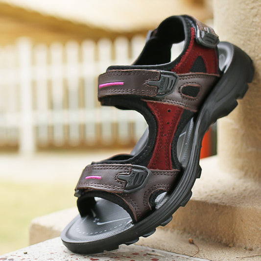 First Layer Cowhide Boys Sandals Soft Bottom Children's Leather Sandals Big Children's Beach Shoes Summer Hollow Boy Beach Shoes