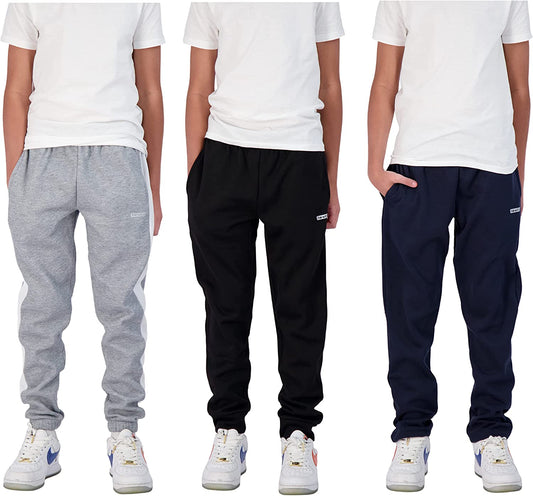 Boys 3-Pack Fleece and Tricot Jogger Sweatpants with Pockets for Athletic & Casual Wear